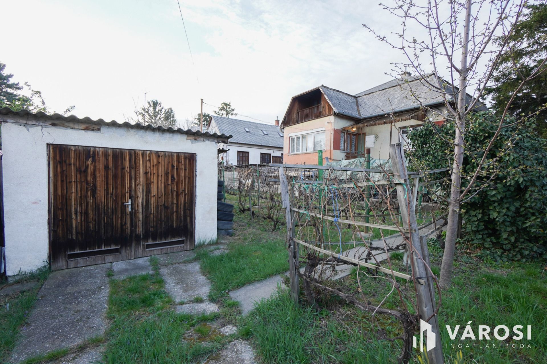 Az ingatlanhoz egy nagyobb, összesen 996nm-es telek is tartozik garázzsal, tárolókkal és természetesen gyümölcsfákkal.