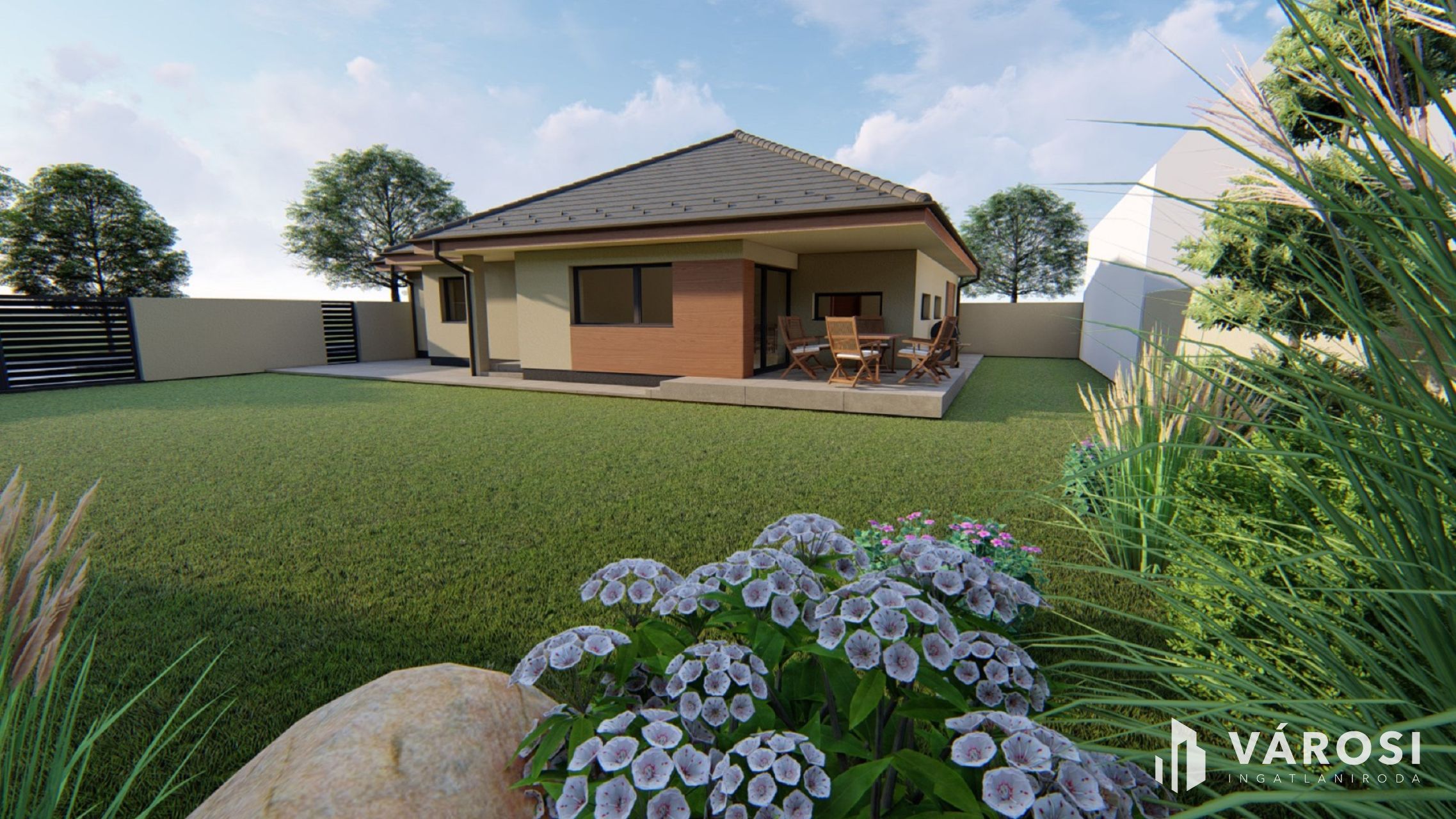 - Amerikai konyhás nappali,3.szoba,2.fürdő, külön WC, szélfogó, terasz, garázs.