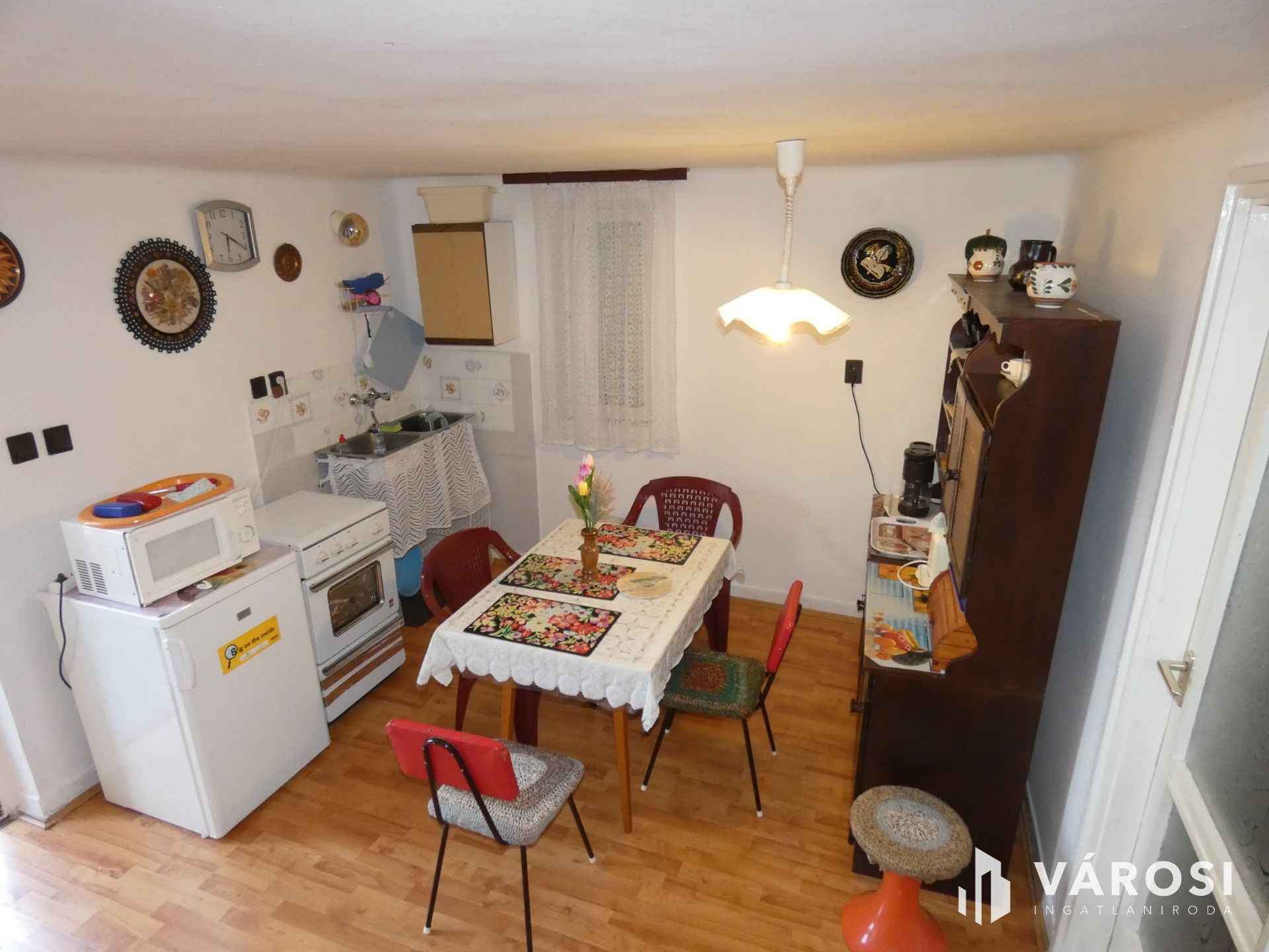 Az ingatlan két szintes épület, melynek állapota átlagos, de kitűnő alapot nyújt a saját elképzelések szerinti esetleges felújításra. A felső szinten 2 hálószoba, konyha-étkező és fürdőszoba biztosítja a kényelmes pihenést. Innen lehet a teraszra is kimenni. A szobaablakokat zsalugáterek árnyékolják be.