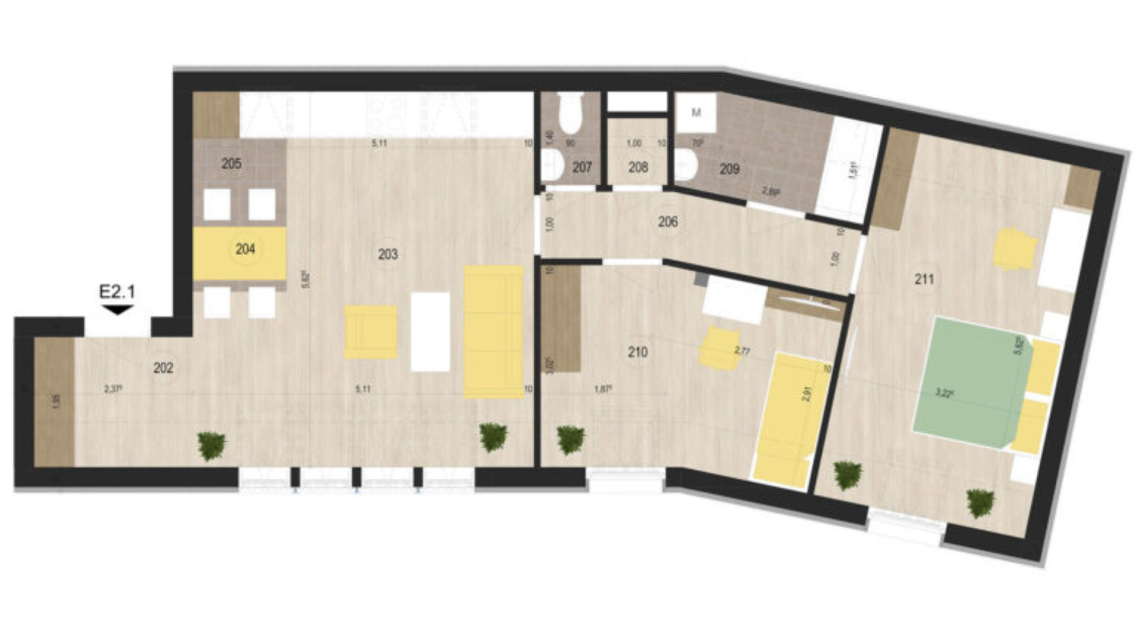 Alapterület: 57,24 m² nettó terület, tágas és világos terekkel.