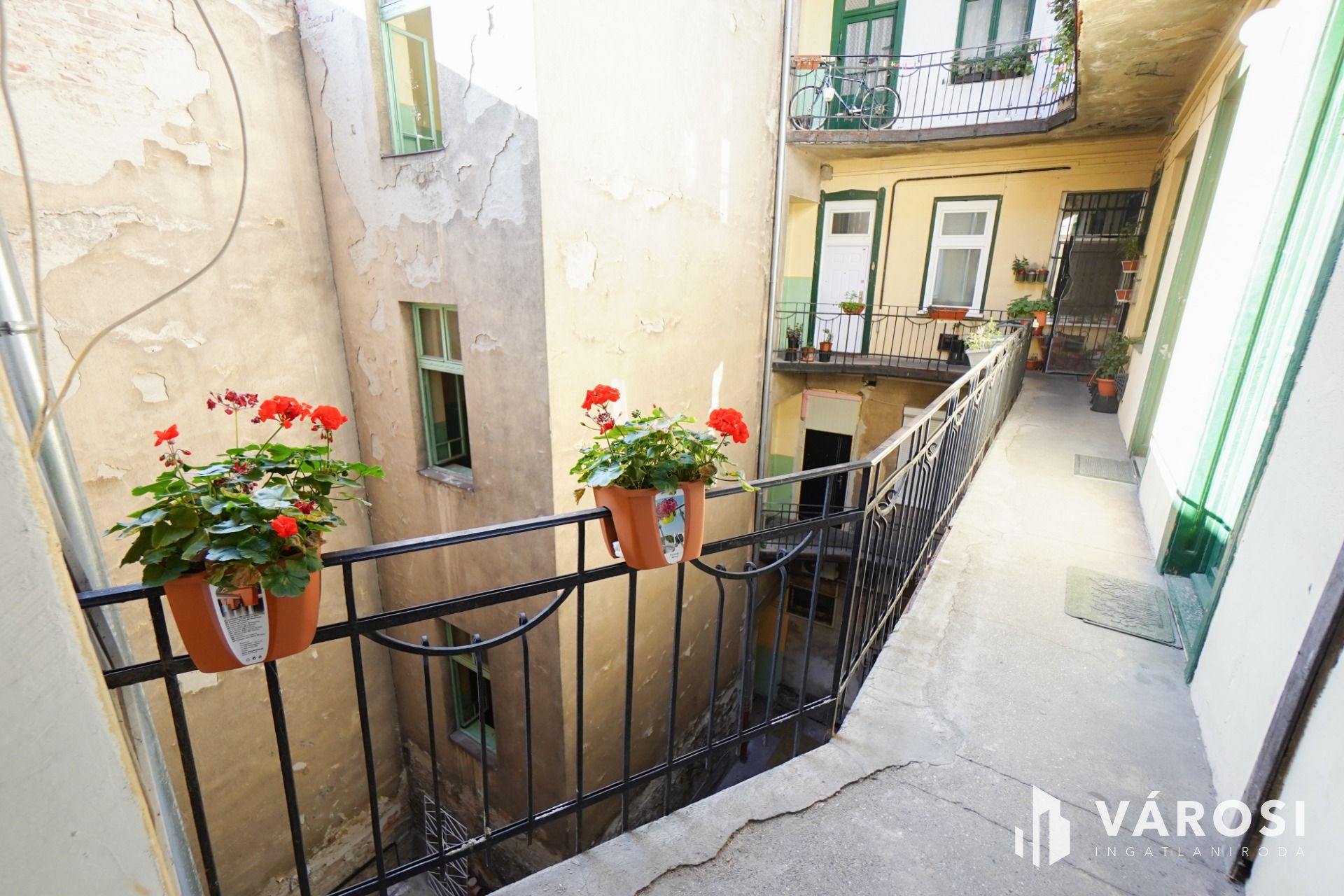 Ablakai a belső udvarra tekintenek így biztos lehet benne, hogy a külső forgalomból szinte semmi sem szívárog be a lakásba.