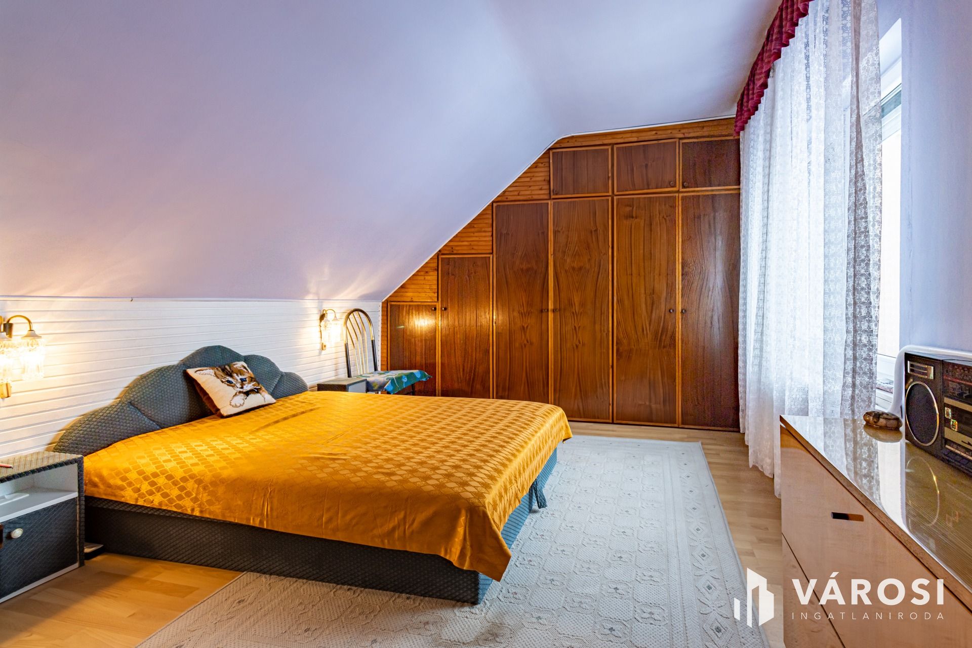Klimatizált, jó elrendezésű, amit a csatolt alaprajzokon is megtekinthet. Az alaprajzokon a tényleges négyzetmétert tüntettem fel, de a tetőtér dőlését beszámítva a hasznos alapterület kb. 95 m2, ez szerepel egyébként a tulajdoni lapon is.