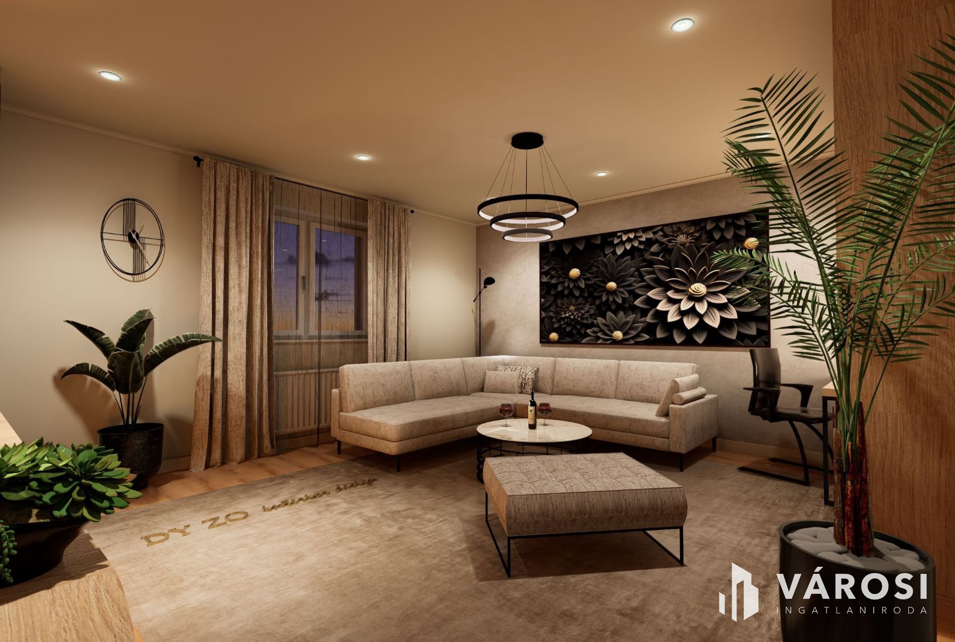 3 hálószoba + amerikai stílusú konyha-étkező,