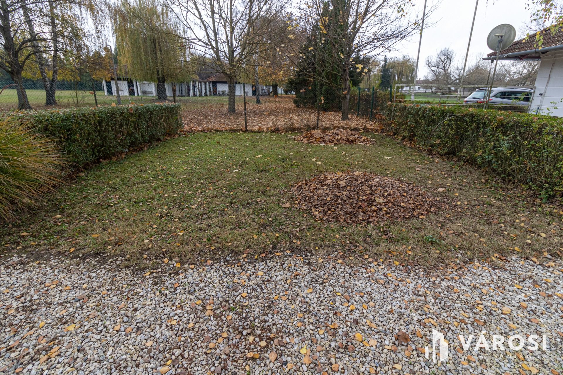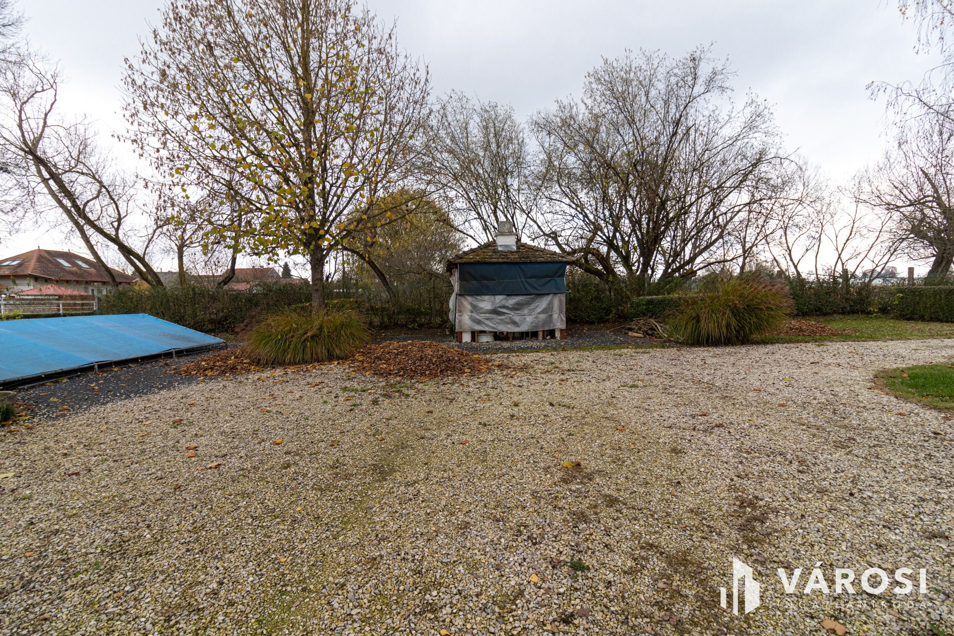 A telek végén egy gazdasági épület, raktár kapott helyet.
