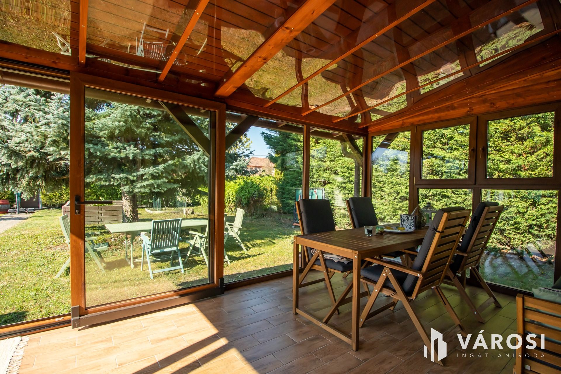 A házhoz tartozó kert és az 501 négyzetméteres másik telek is szépen parkosított. Magaságyások és üvegház biztosítják az itt lakók egész éves zöldségszükségletét. A locsolásról saját fúrt kút és kiépített öntözőrendszer gondoskodik. Becsült piaci értéke körülbelül 45-50 mFt.