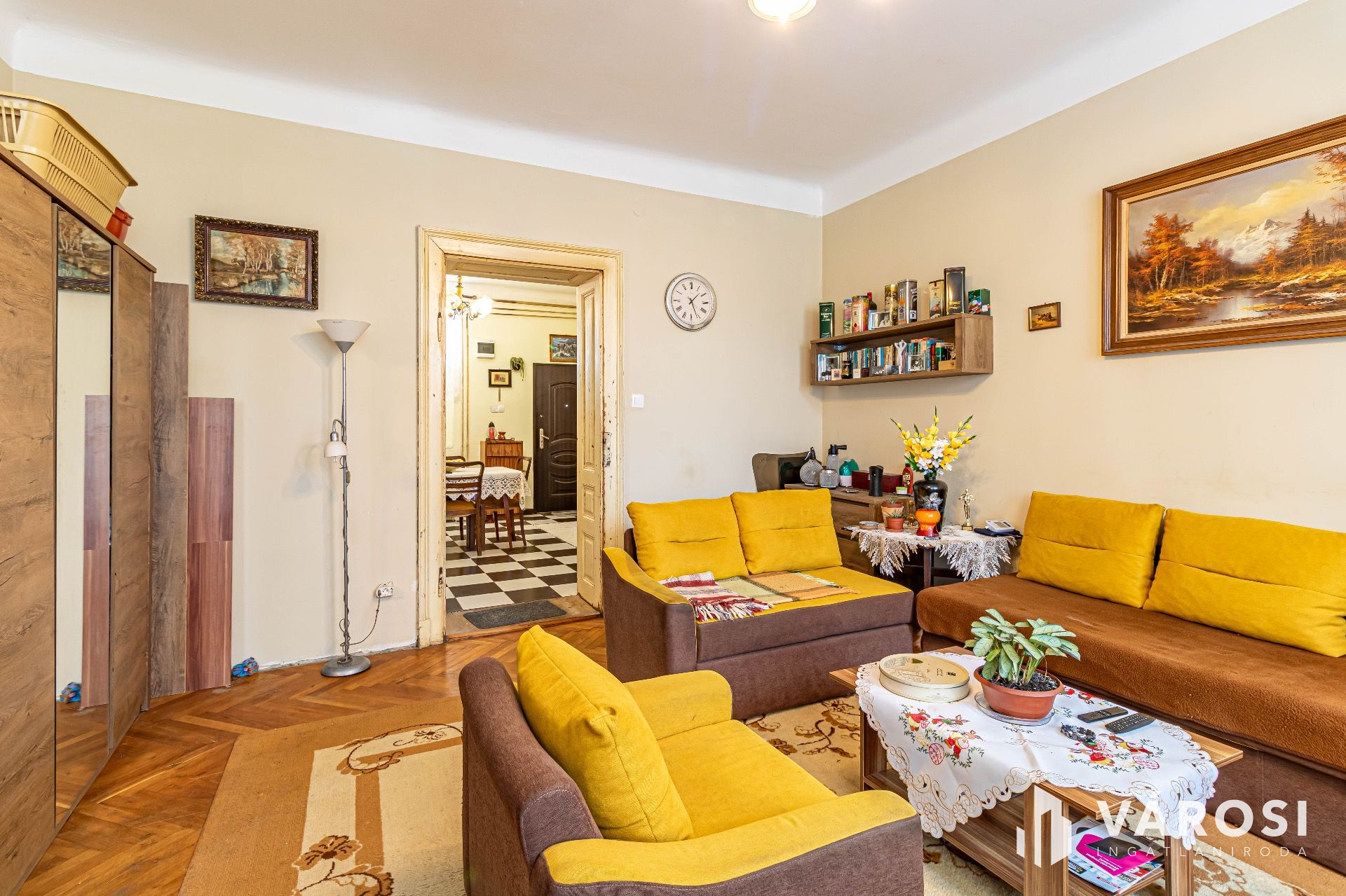 A lakás teljesen kimeríti a polgári építkezés klasszikus elemeit. Utcára néző szobák.
